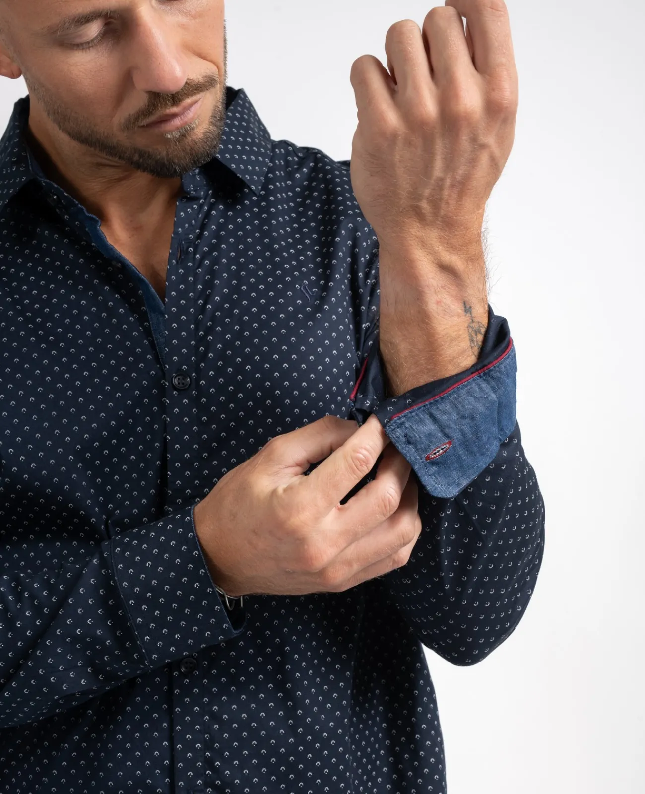 Un imprimé discret, une matière légèrement stretch, Alorh est une chemise aussi élégante que confortable.