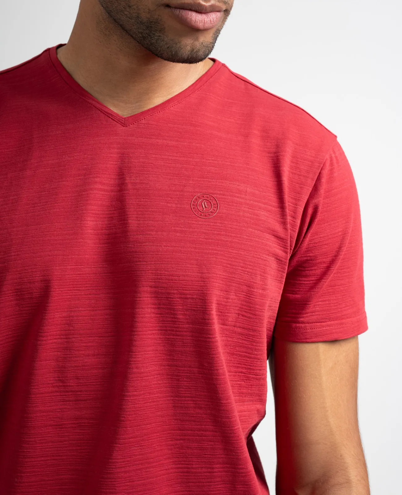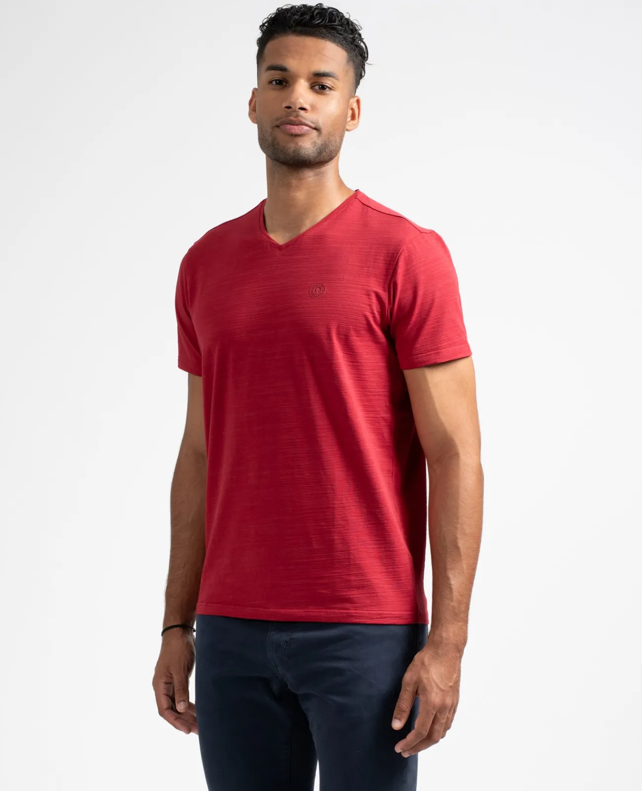 Indispensable du dressing, le t-shirt col V à manches courtes Cauft est en coton et spandex. Près du corps, il affiche un petit logo sur la poitrine.