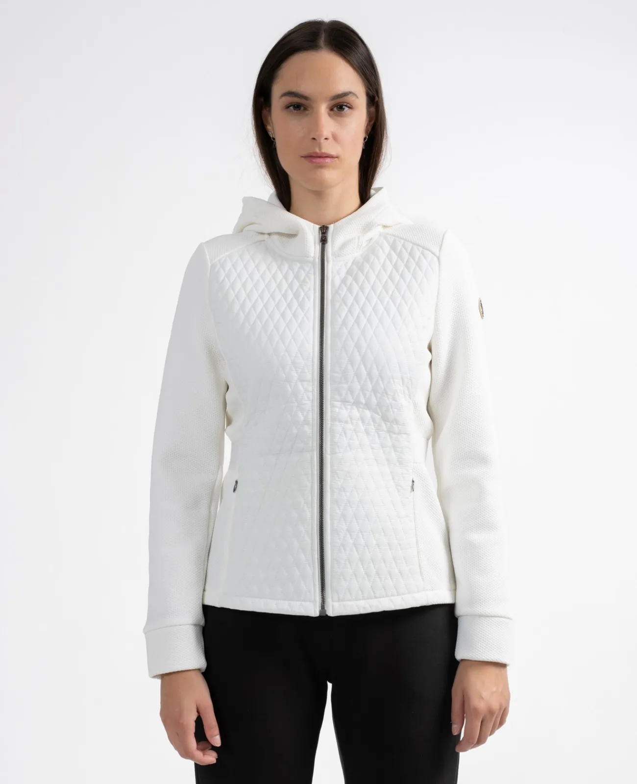 Deytag, c’est notre veste multi-usages grâce à sa capuche et son mix de matières. Près du corps, son tissage lui apporte une touche de féminité.