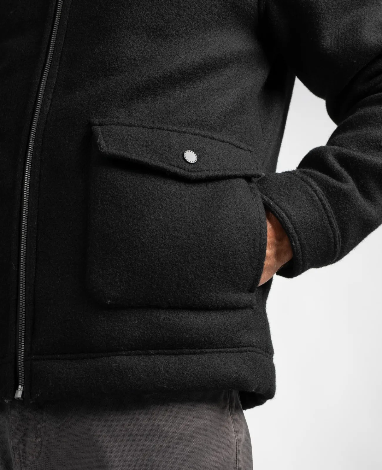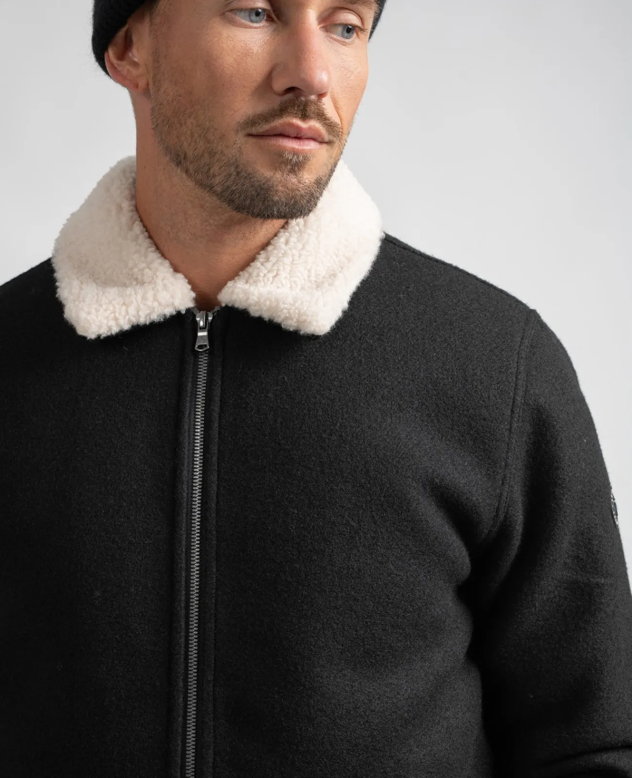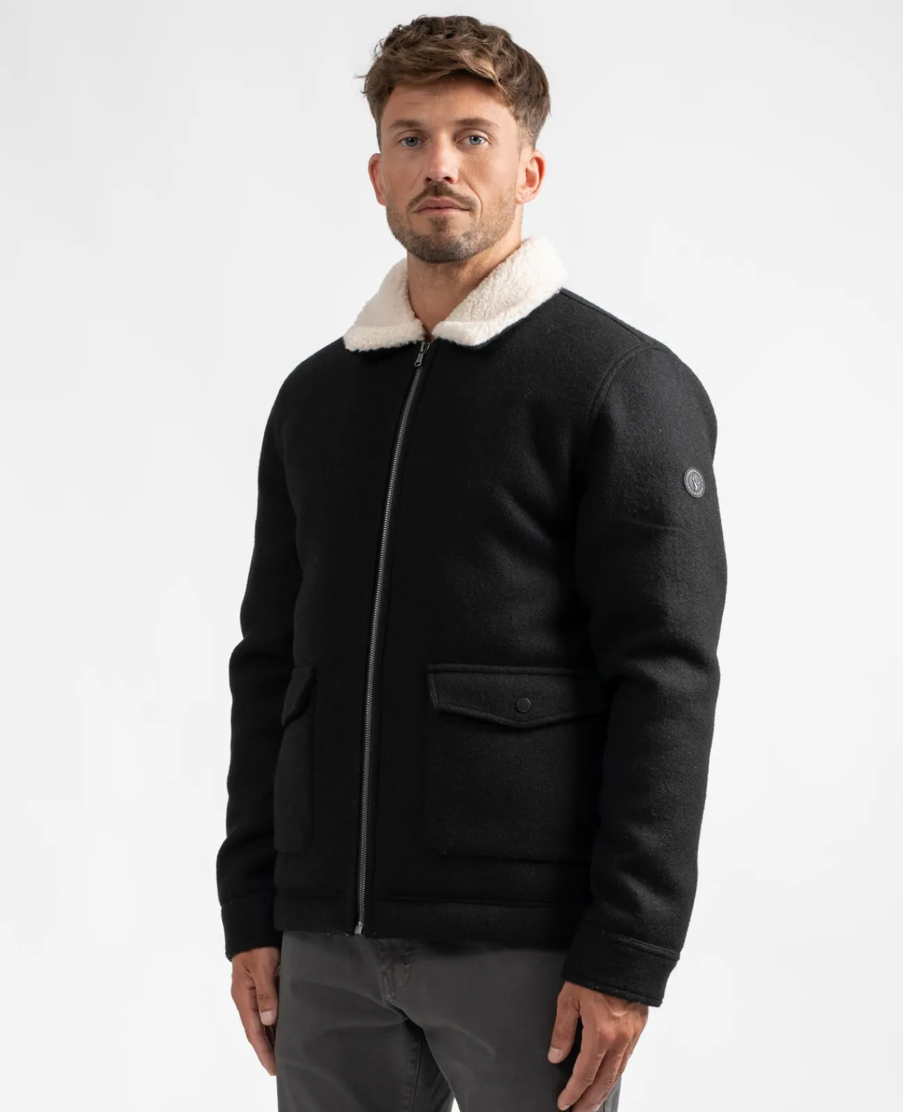 Un blouson aussi chic qu’élégant grâce à sa matière aspect drap de laine. Son col en moumoute lui apporte une touche originale.