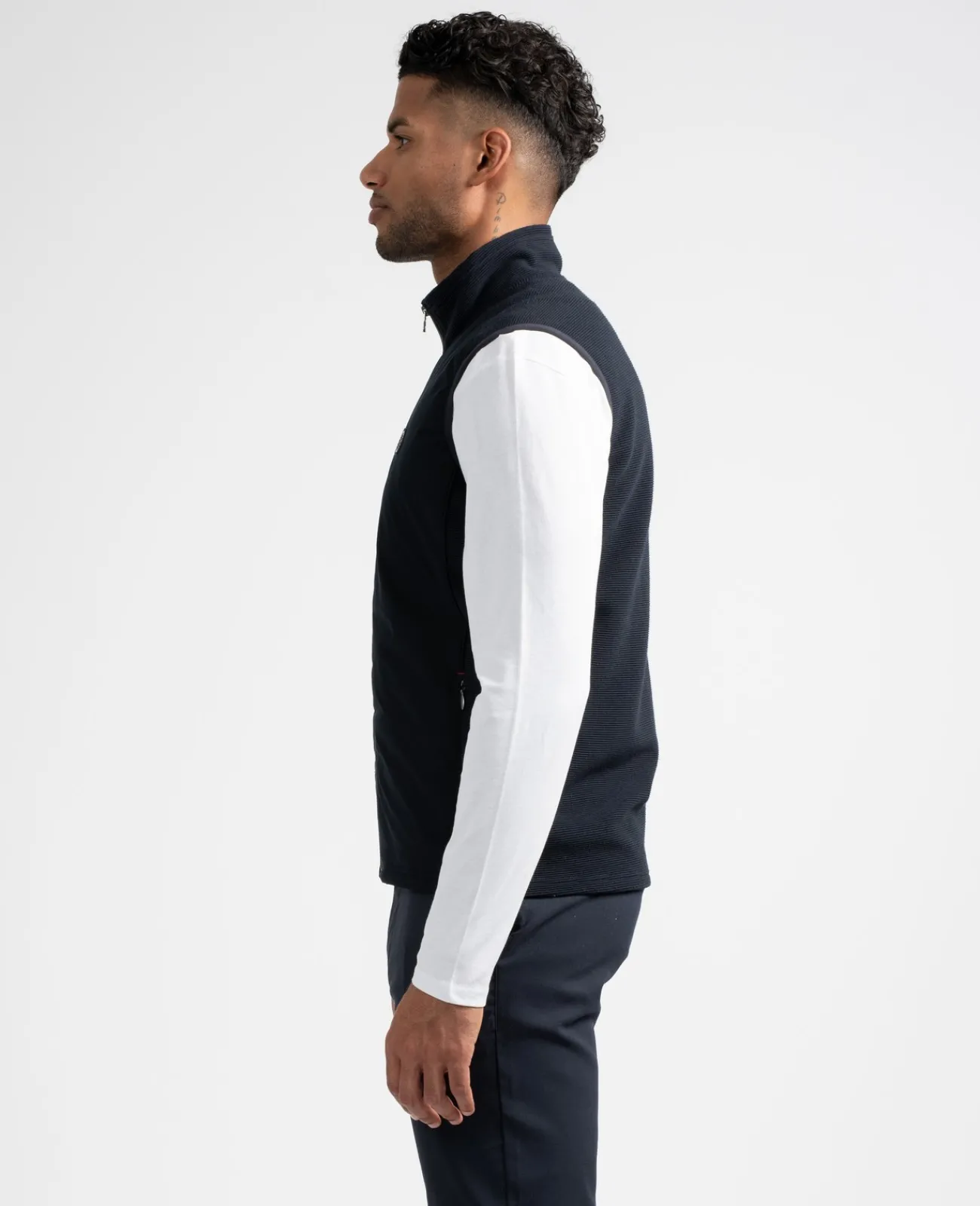 Sans manche, Lenzo est un gilet en molleton avec un empiècement en nylon. Une double matière qui lui apporte une touche d’orginalité.
