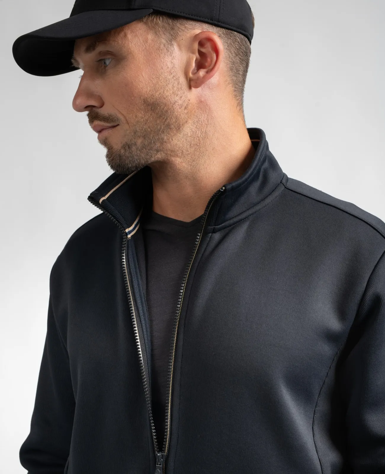 Col montant et zip pour ce sweat uni avec deux poches zippées sur le côté. Idéal sur une chemise ou un t-shirt.