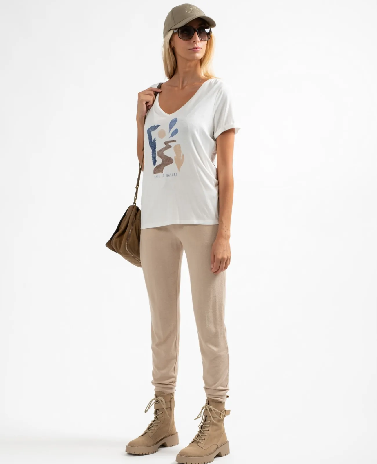 Imprimé orginal et esprit nature pour ce modèle à manches courtes et son large col V. Légèrement près du corps, il se mixe avec tous vos jeans et pantalons.
