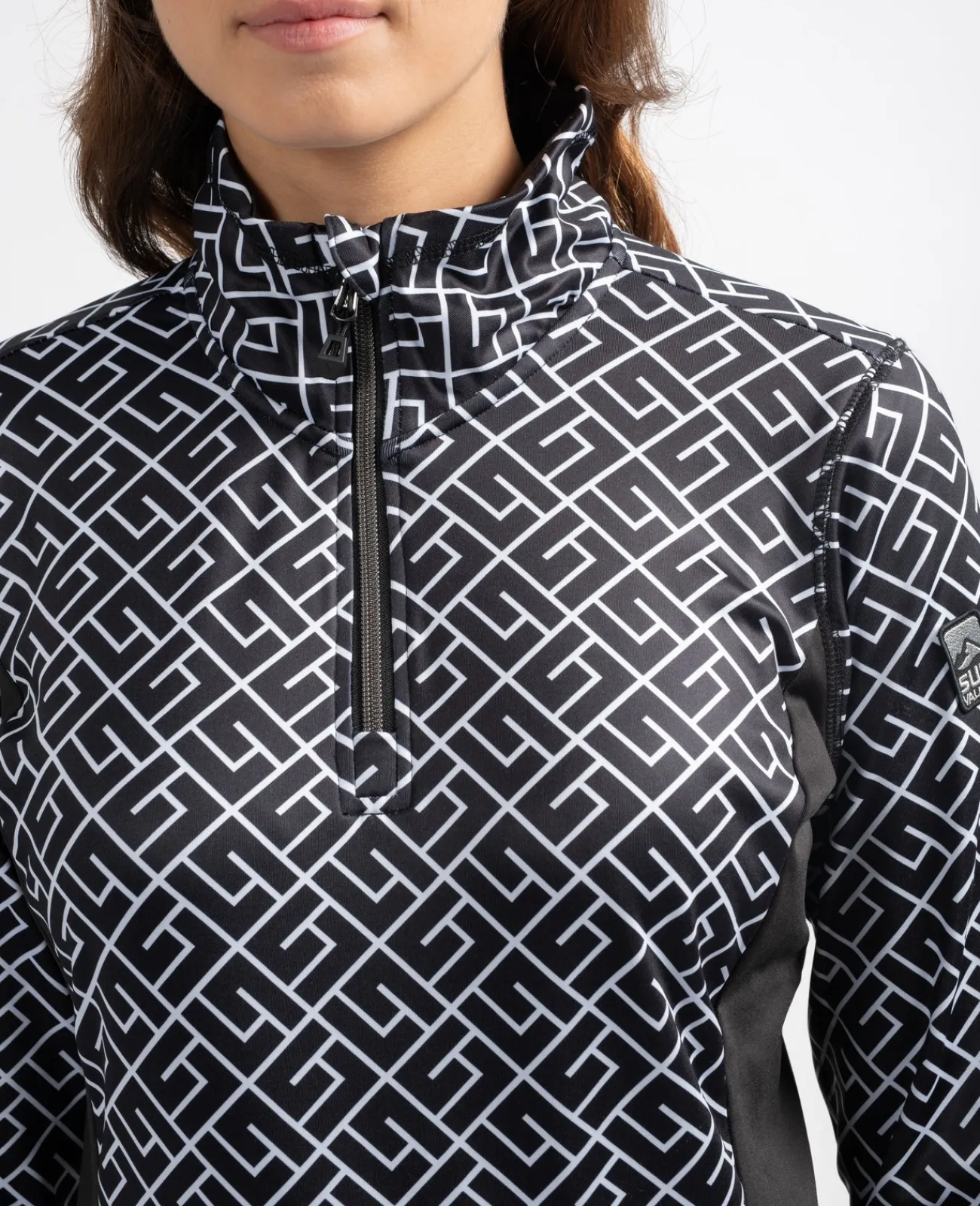 En sous couche ou à même la peau, ce thermique avec notre imprimé saisonnier apporte chaleur et confort. Grâce à sa coupe cintrée, il se glisse facilement sous vos autres vêtements. Col montant avec fermeture éclair.