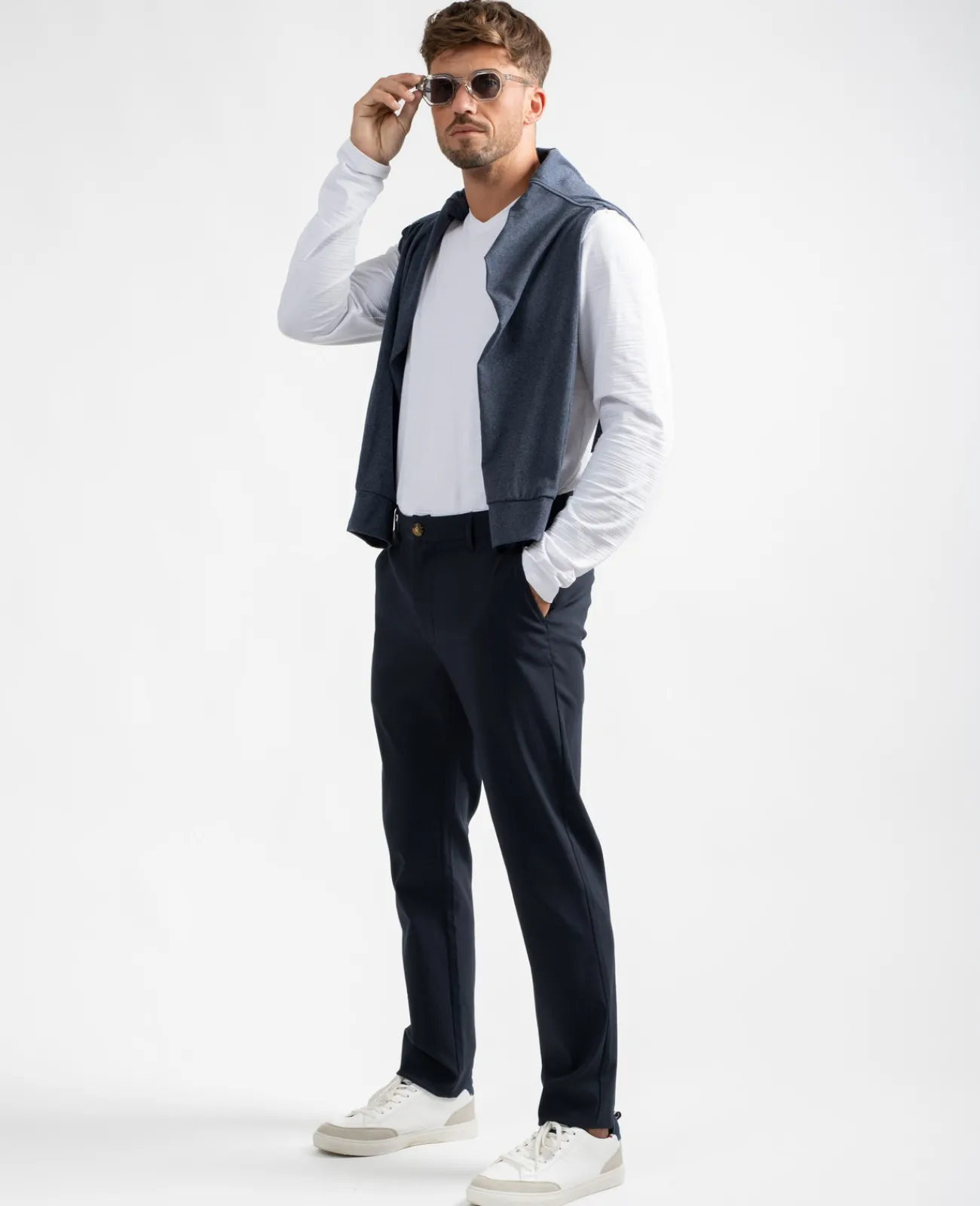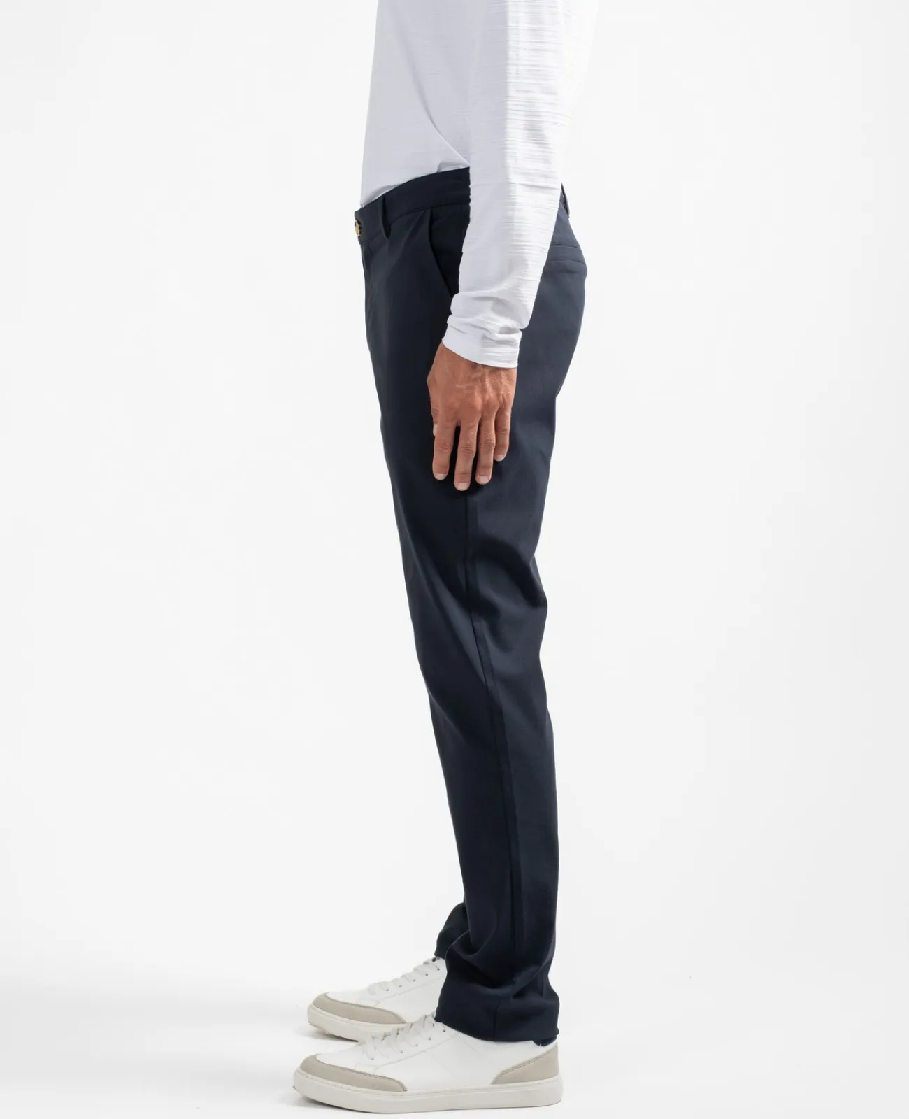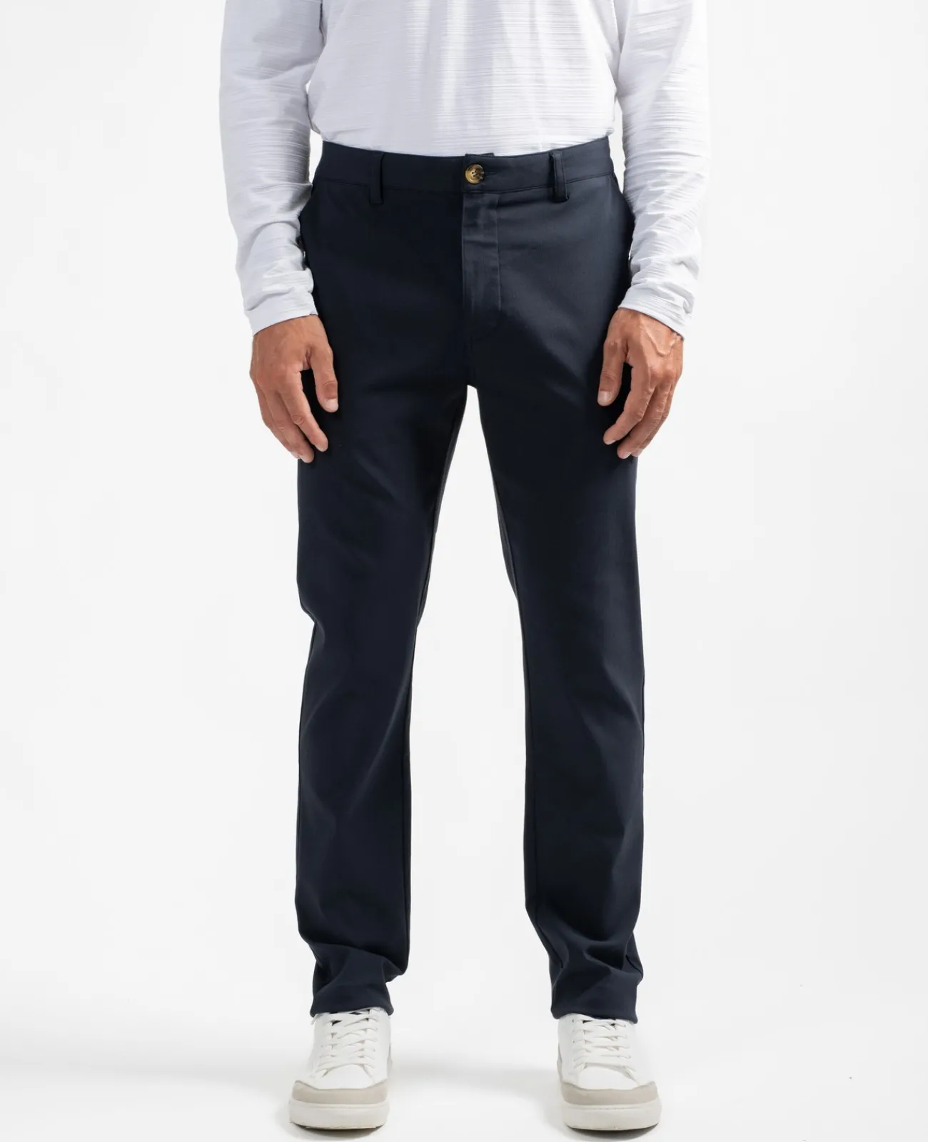 Coupe droite et près du corps pour ce pantalon légèrement stretch. Associé à une chemise ou à un polo, il est votre allié du quotidien.