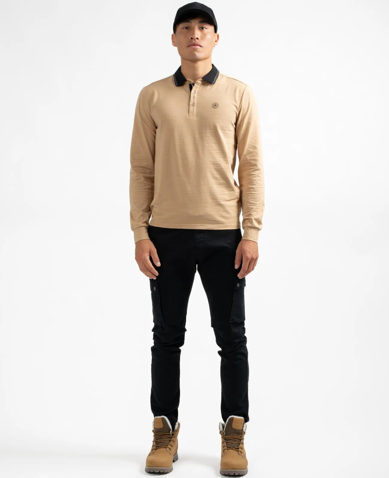 Un polo manches longues en coton et spandex dont l’originalité tient à sa matière légèrement texturée. Il se porte près du corps pour une allure résolument moderne.