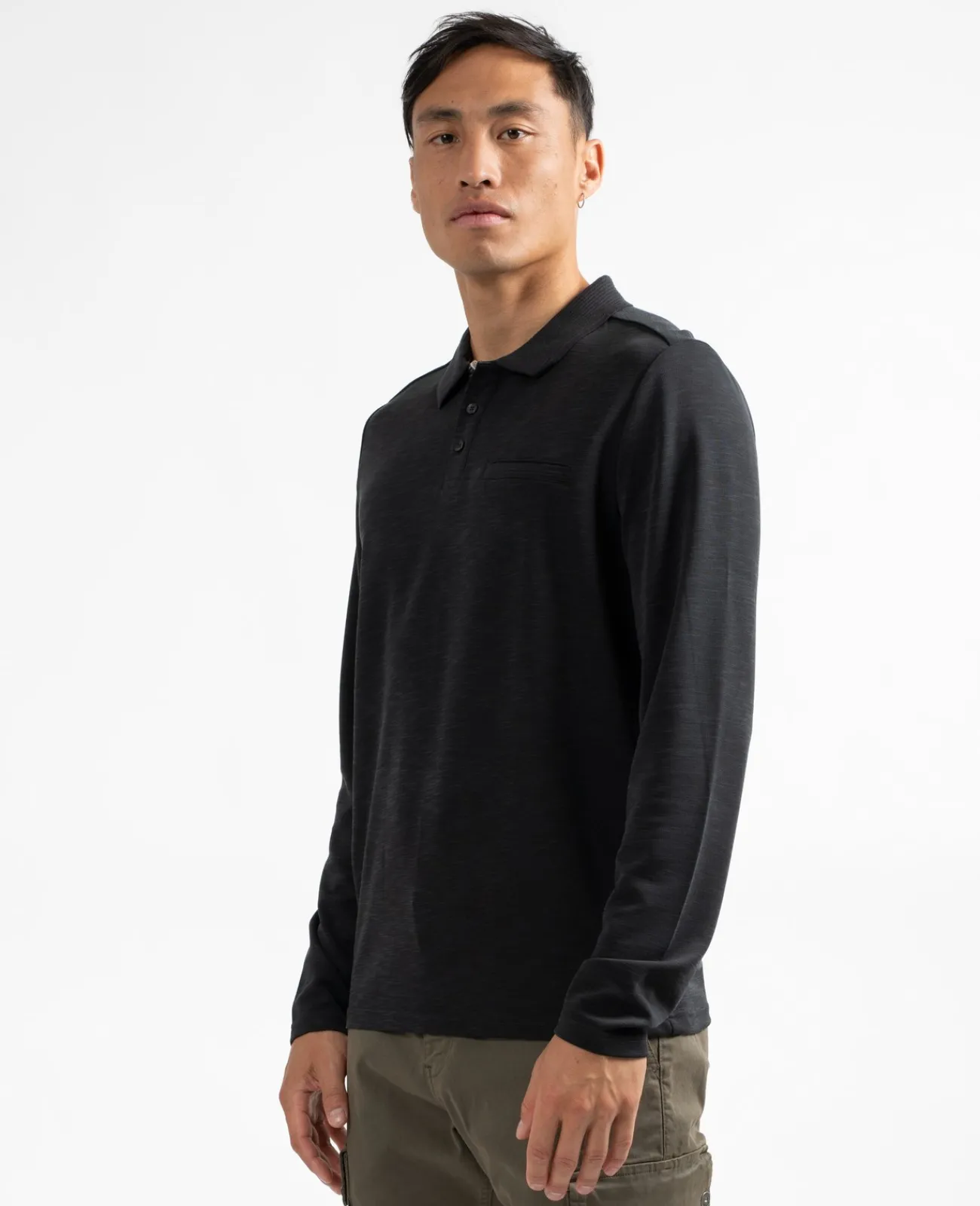 Petite poche poitrine et manches longues pour ce polo en jersey reliefé. Classique et élégant, un intemporel du vestiaire masculin.