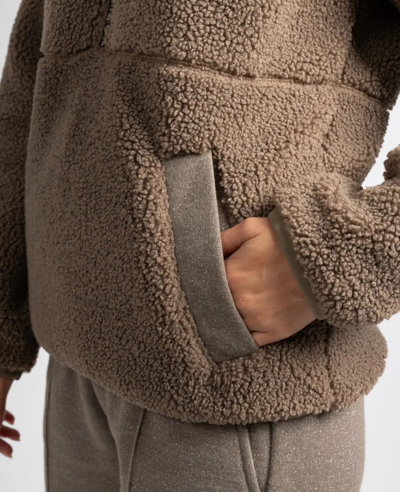 Un sweat tellement confortable qu’on aimerait ne jamais le quitter. Petites poches, col zippé et légèrement montant, il se porte aussi bien dedans que dehors.