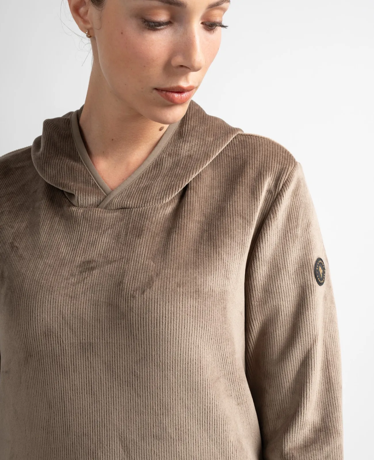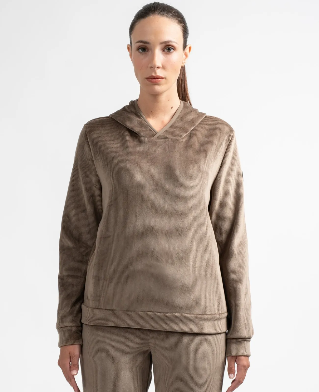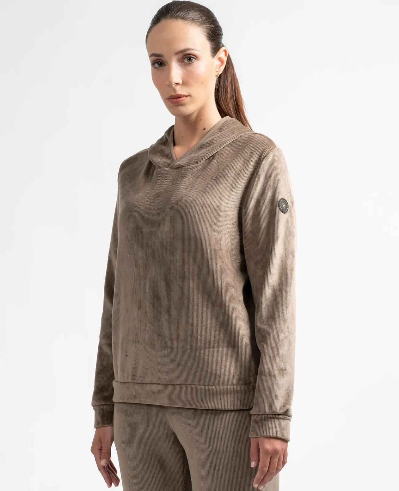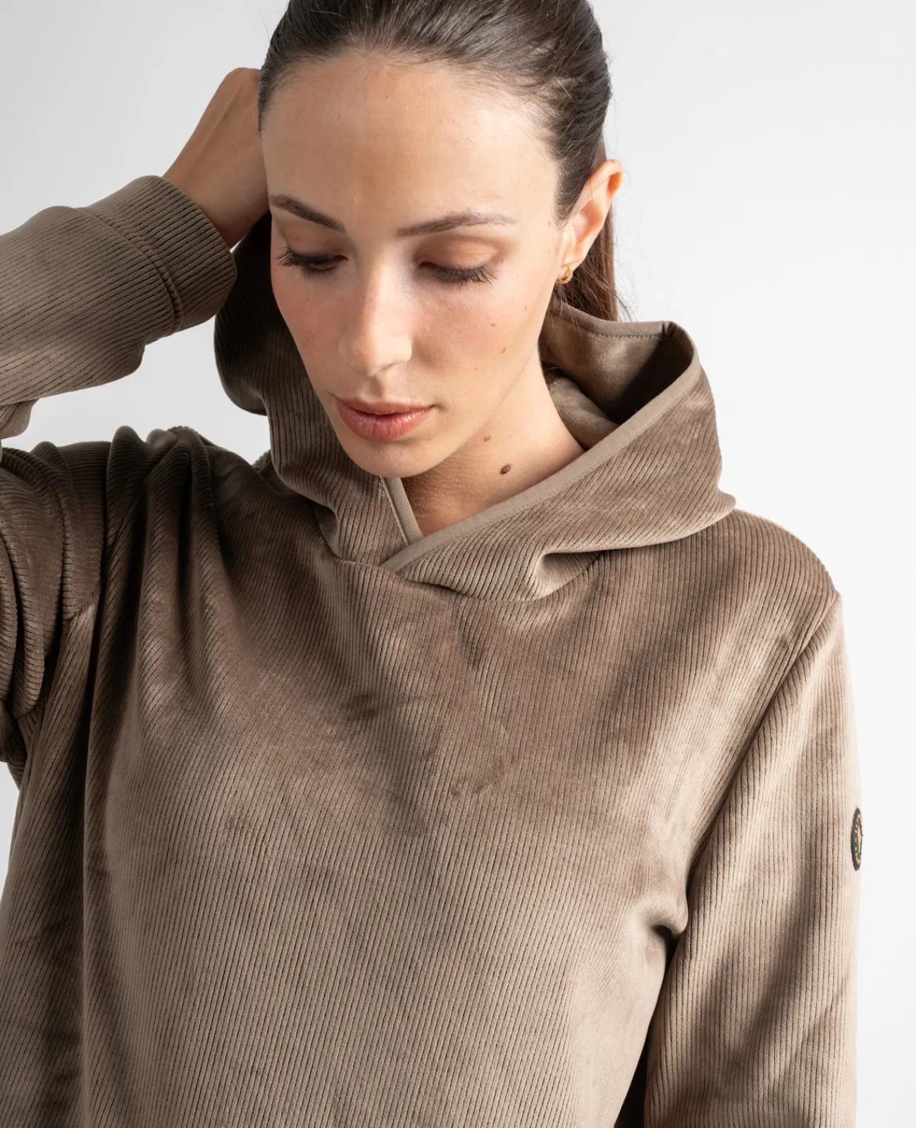 Sa matière toute douce et sa capuche font de ce sweat celui qu’on ne quitte plus. Son aspect velours côtelé apporte un côté très actuel à cet intemporel du dressing.