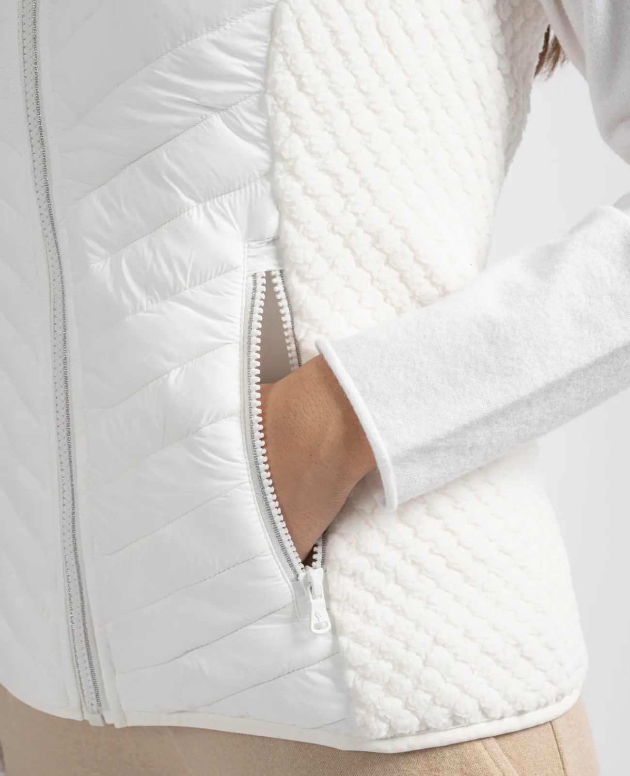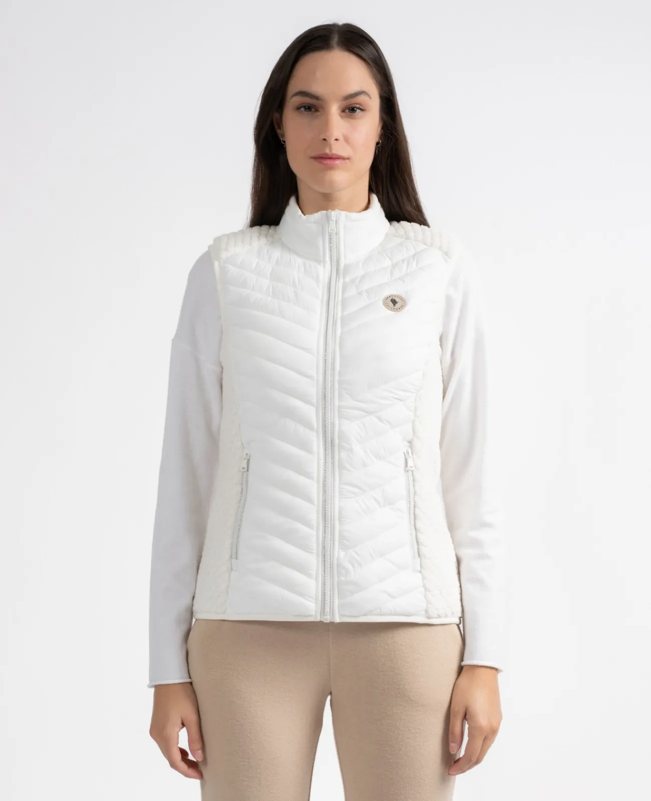 Pour ne jamais avoir froid, le gilet sans manche bi-matière est la solution. Entièrement zippé, il se porte ouvert ou fermé selon les températures. Une pièce à avoir dans son dressing !