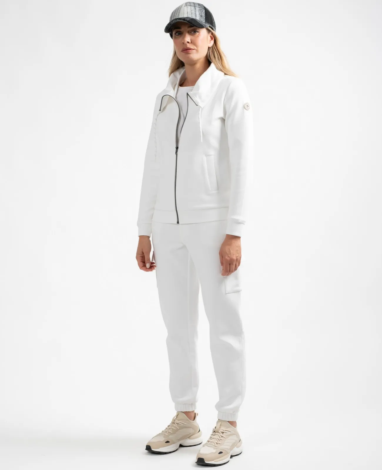 Col châle pour la fémininité, Dyniah c’est la veste que l’on porte dès que les temératures baissent. Entièrement zippée et avec un cordon de serrage au col, c’est le mix idéal idéal entre chaleur et confort.