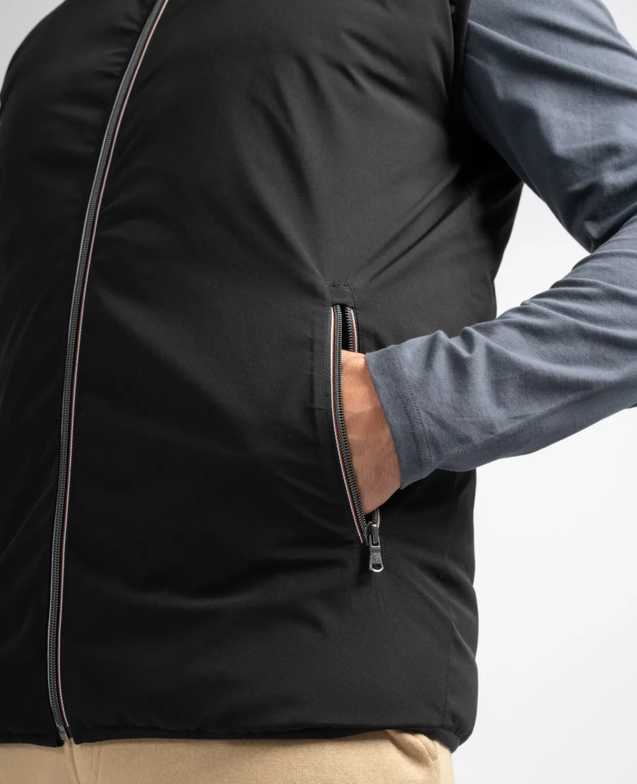Déperlant et imperméable, Exolo est le gilet sans manche idéal pour avoir chaud en toutes circonstances. Il se porte aussi bien sur un pull que sous un manteau.