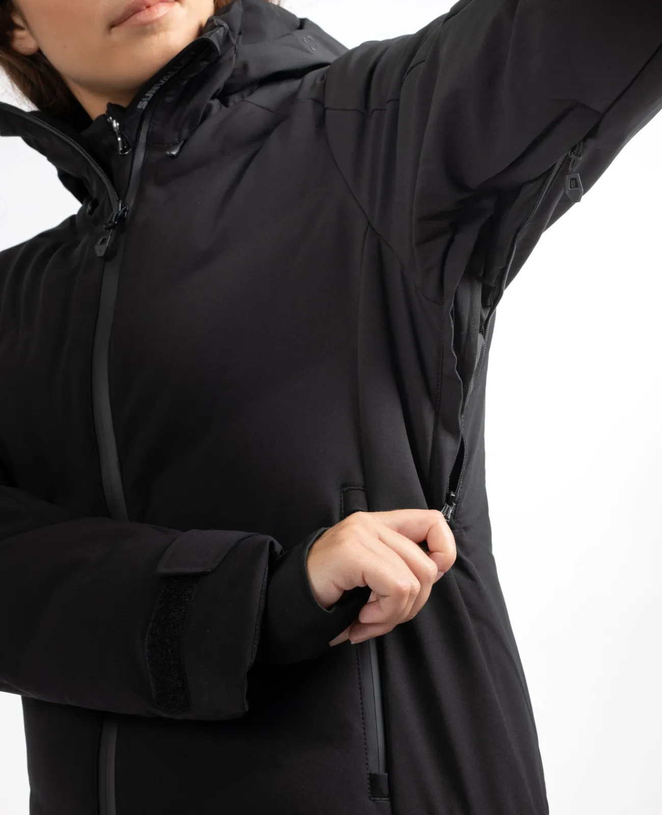 Ultra chaude mais aussi imperméable et respirante, Kamino est une veste ultra technique qui convient parfaitement aux skieuses avides de liberté de mouvement. Son col montant et sa capuche bien emboitante lui permettent de s’adapter aux conditions climatiques.