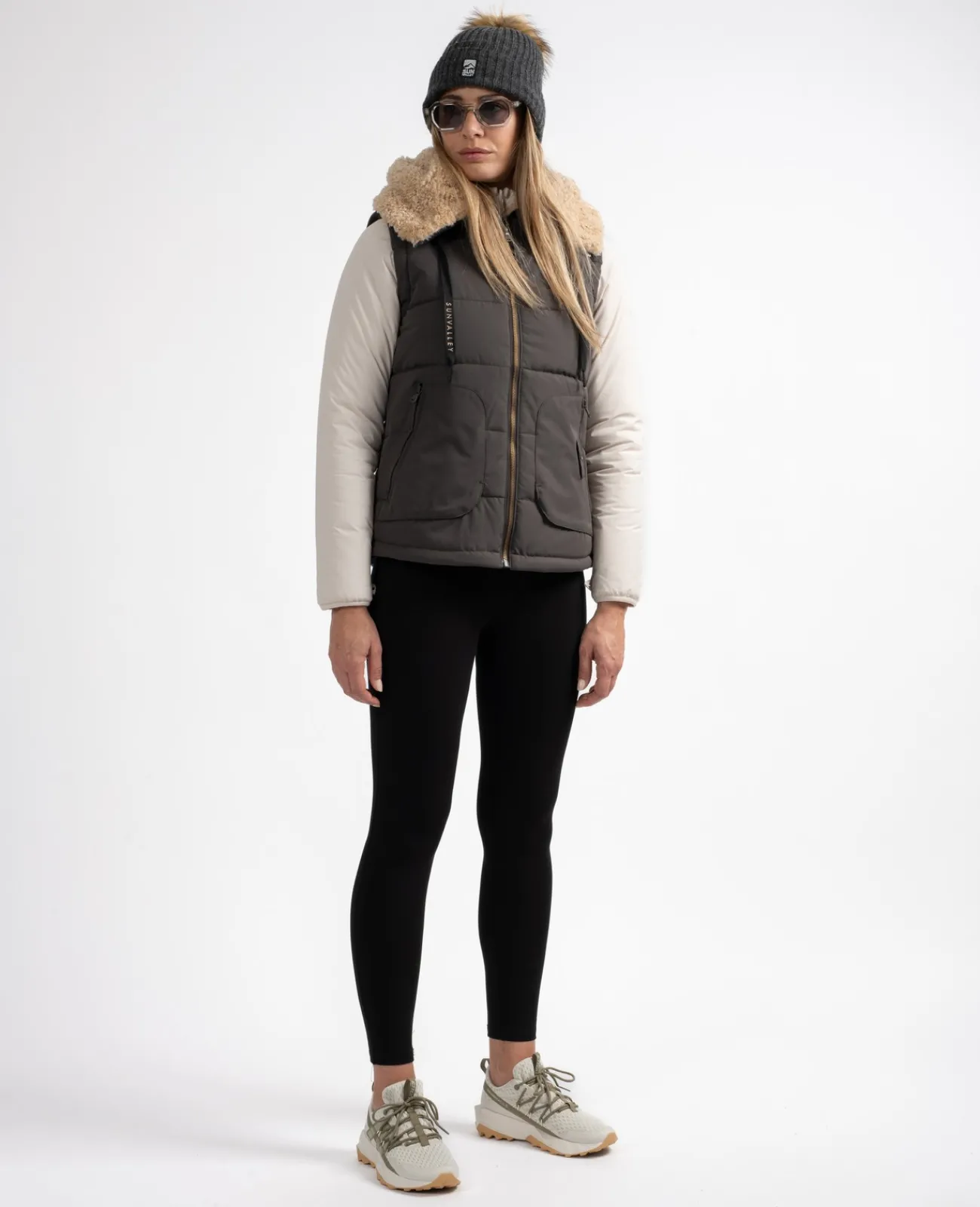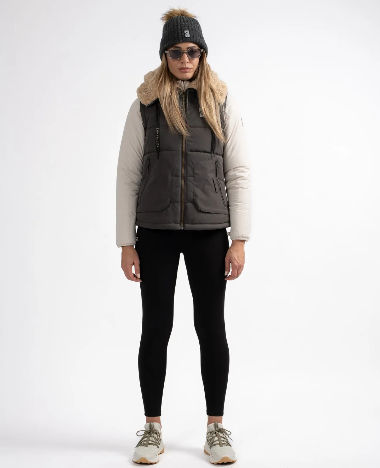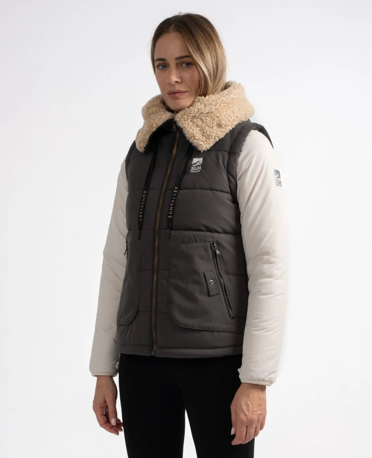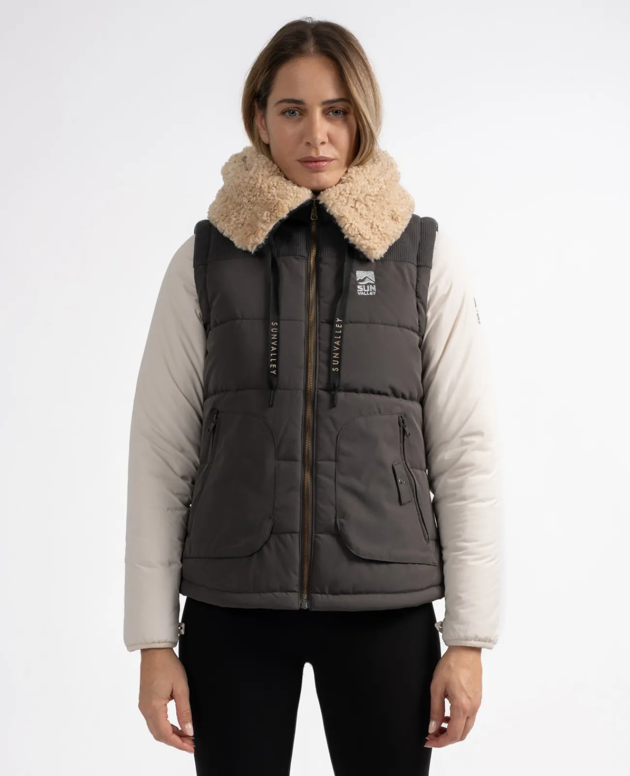 Cette veste sans manche à l’esprit doudoune est aussi chaude que tendance. On adore son col en moumoute et sa capuche. Sur les pistes ou en après-ski, on ne la quitte pas de l’hiver.