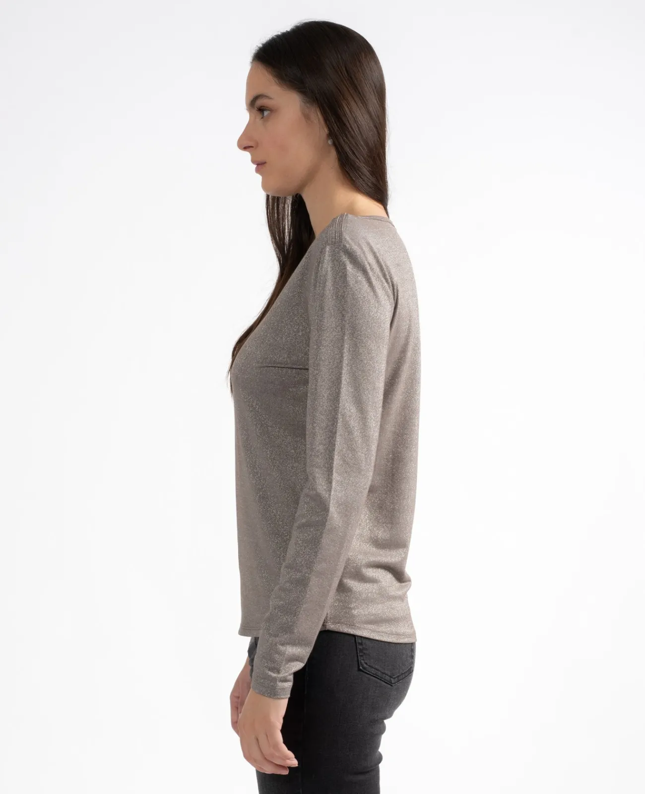 Très féminin grâce à son encolure col rond, Polesk joue la carte de la fantaisie avec son fil en lurex. Manches longues, c’est le basique de l’hiver à porter à même la peau.