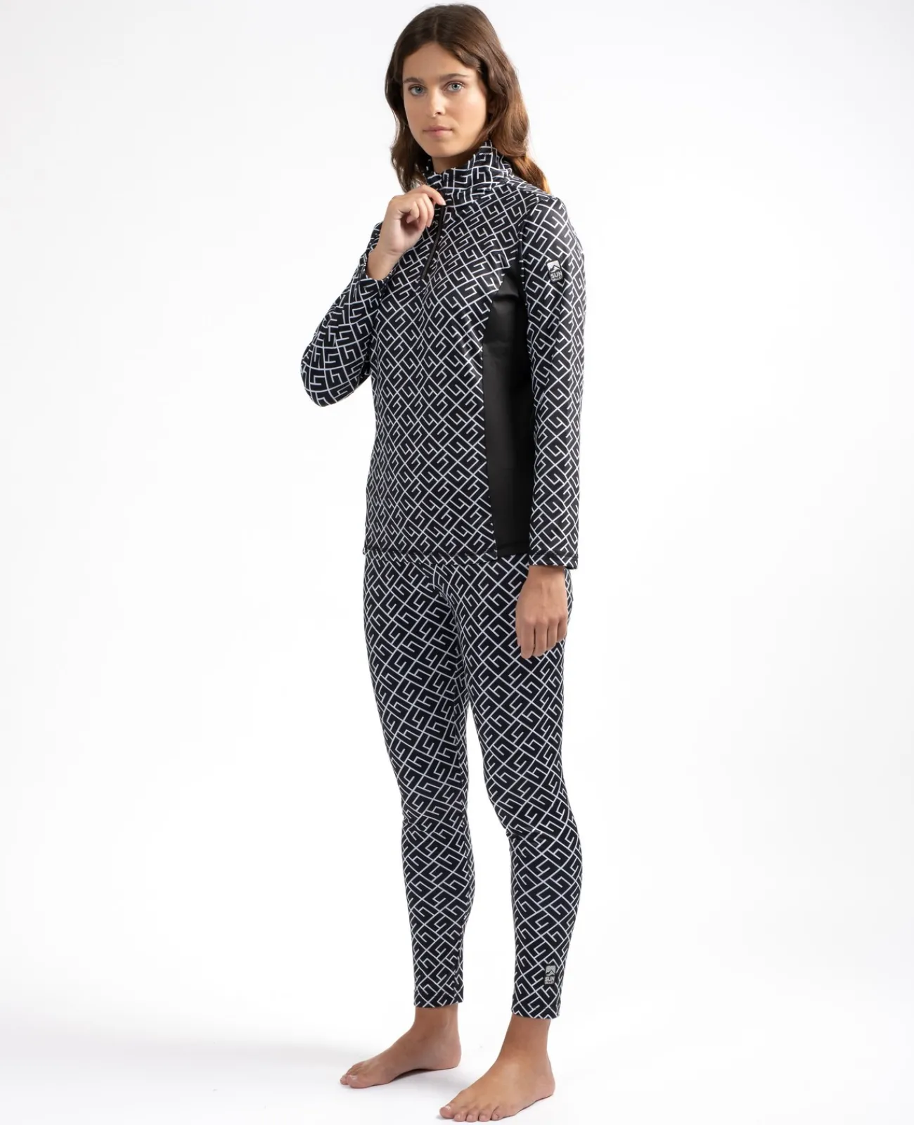 En sous couche ou à même la peau, ce thermique avec notre imprimé saisonnier apporte chaleur et confort. Grâce à sa coupe cintrée, il se glisse facilement sous vos autres vêtements. Col montant avec fermeture éclair.