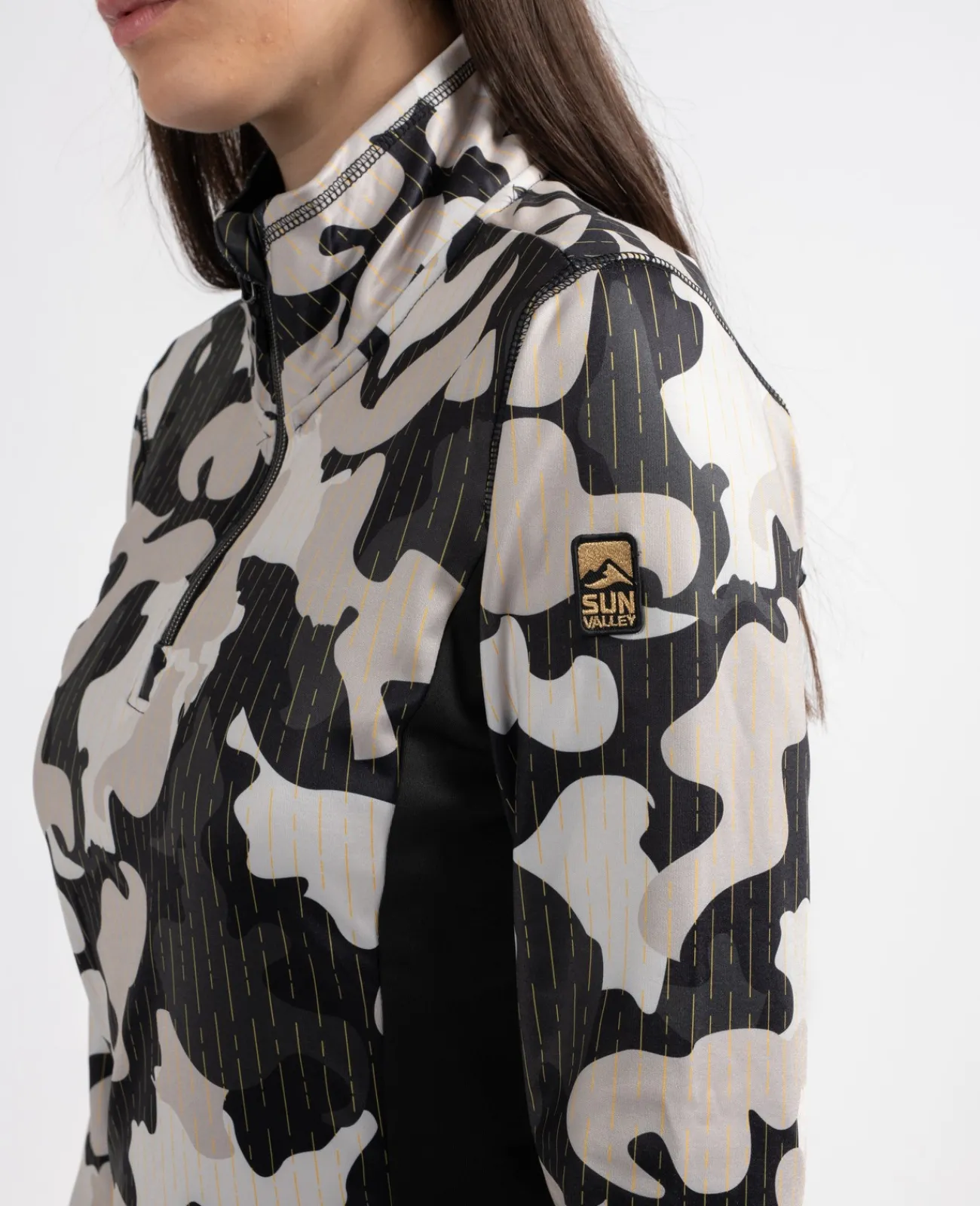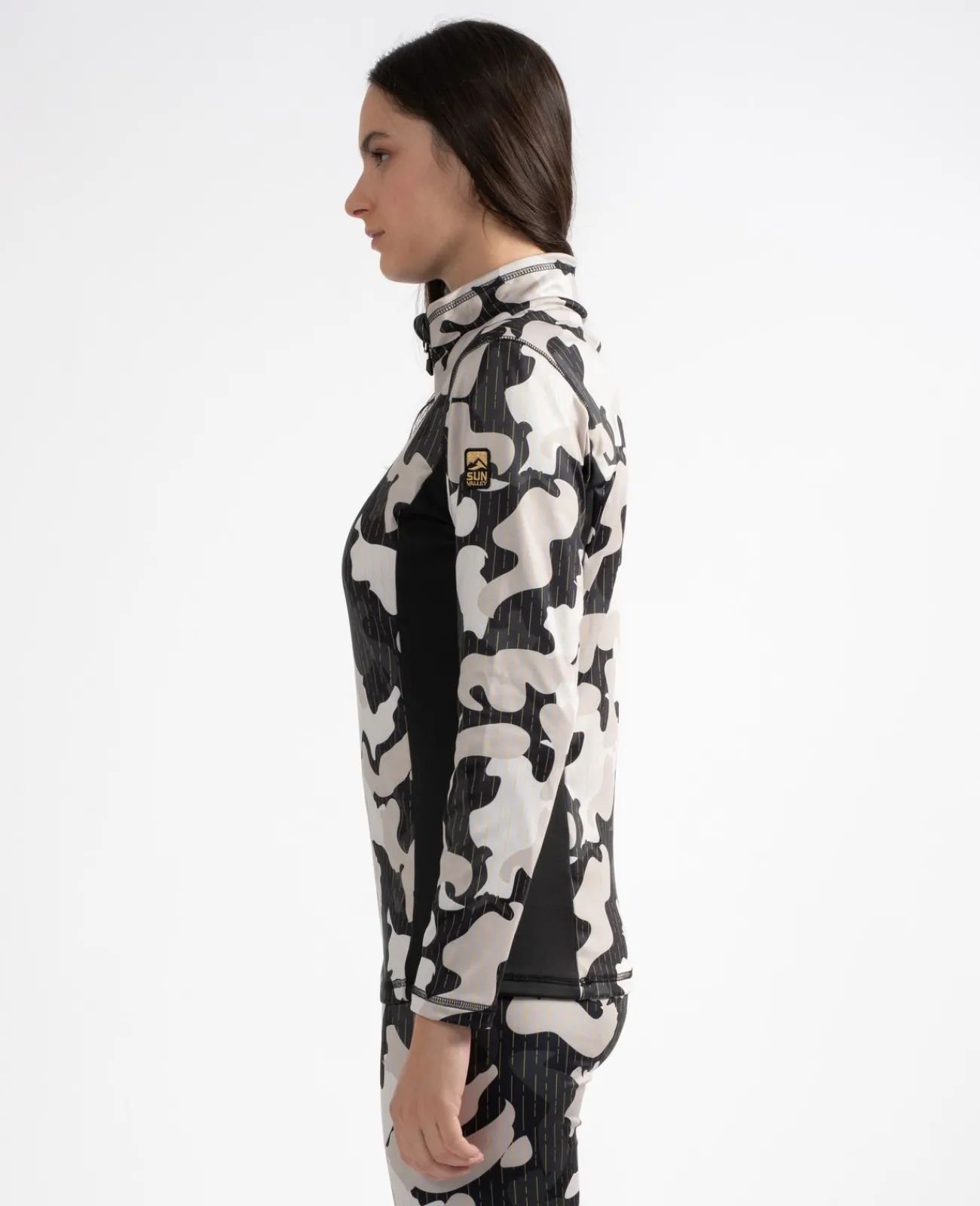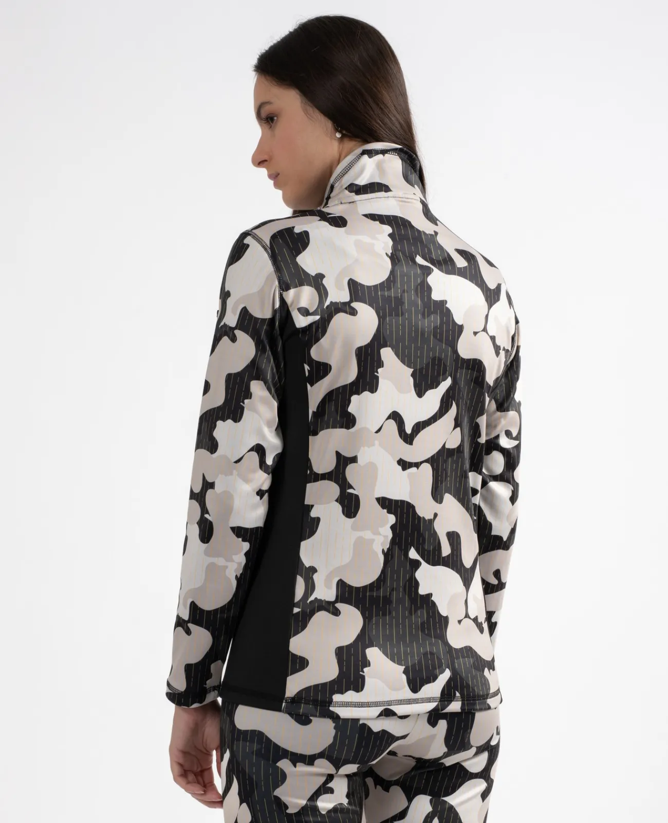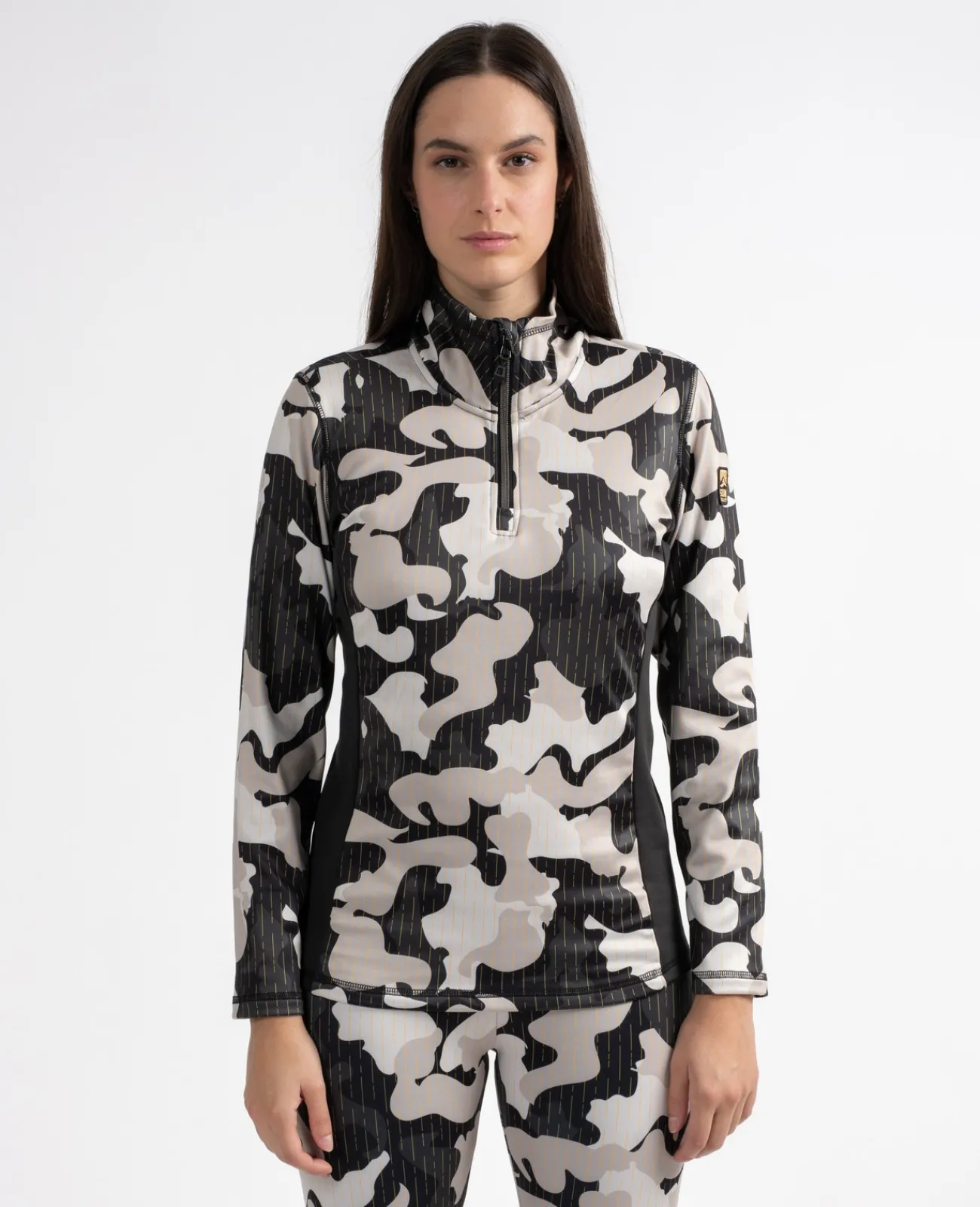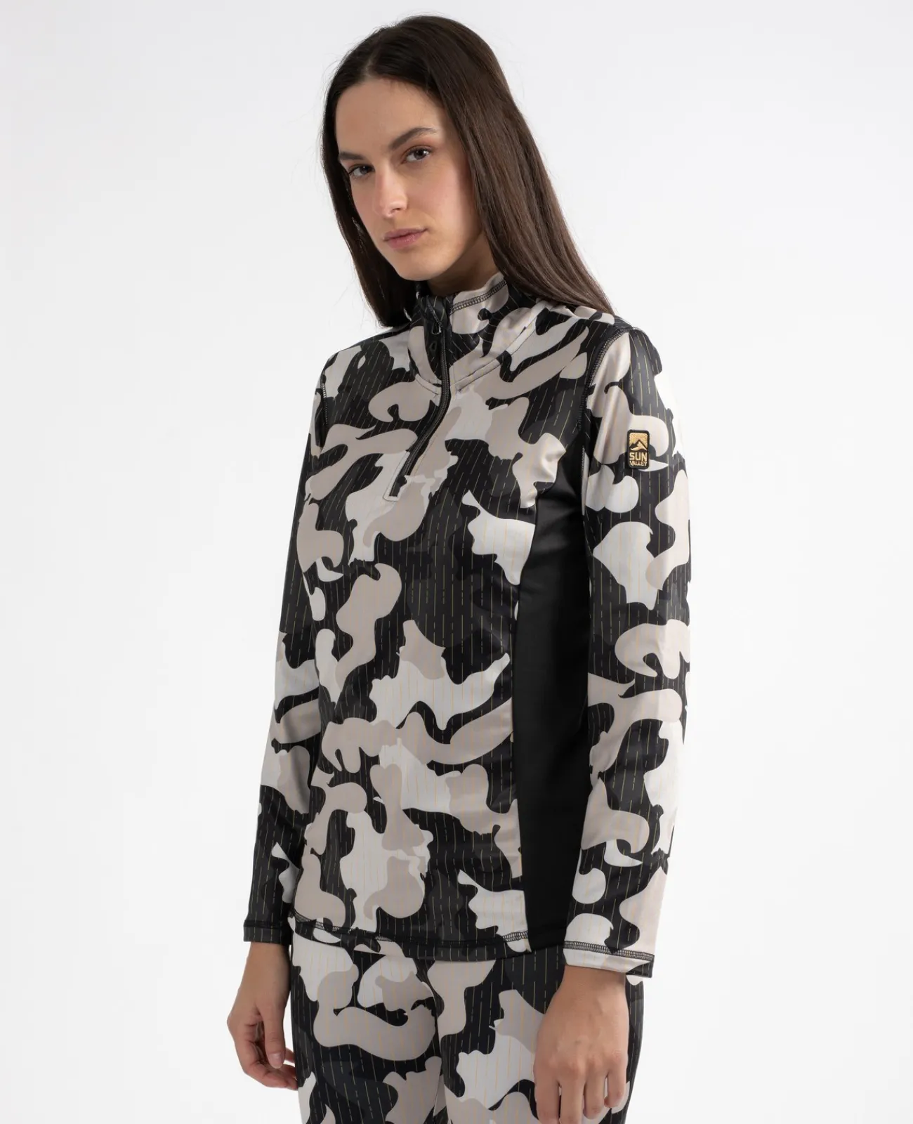 En sous couche ou à même la peau, ce thermique avec notre imprimé saisonnier apporte chaleur et confort. Grâce à sa coupe cintrée, il se glisse facilement sous vos autres vêtements. Col montant avec fermeture éclair.