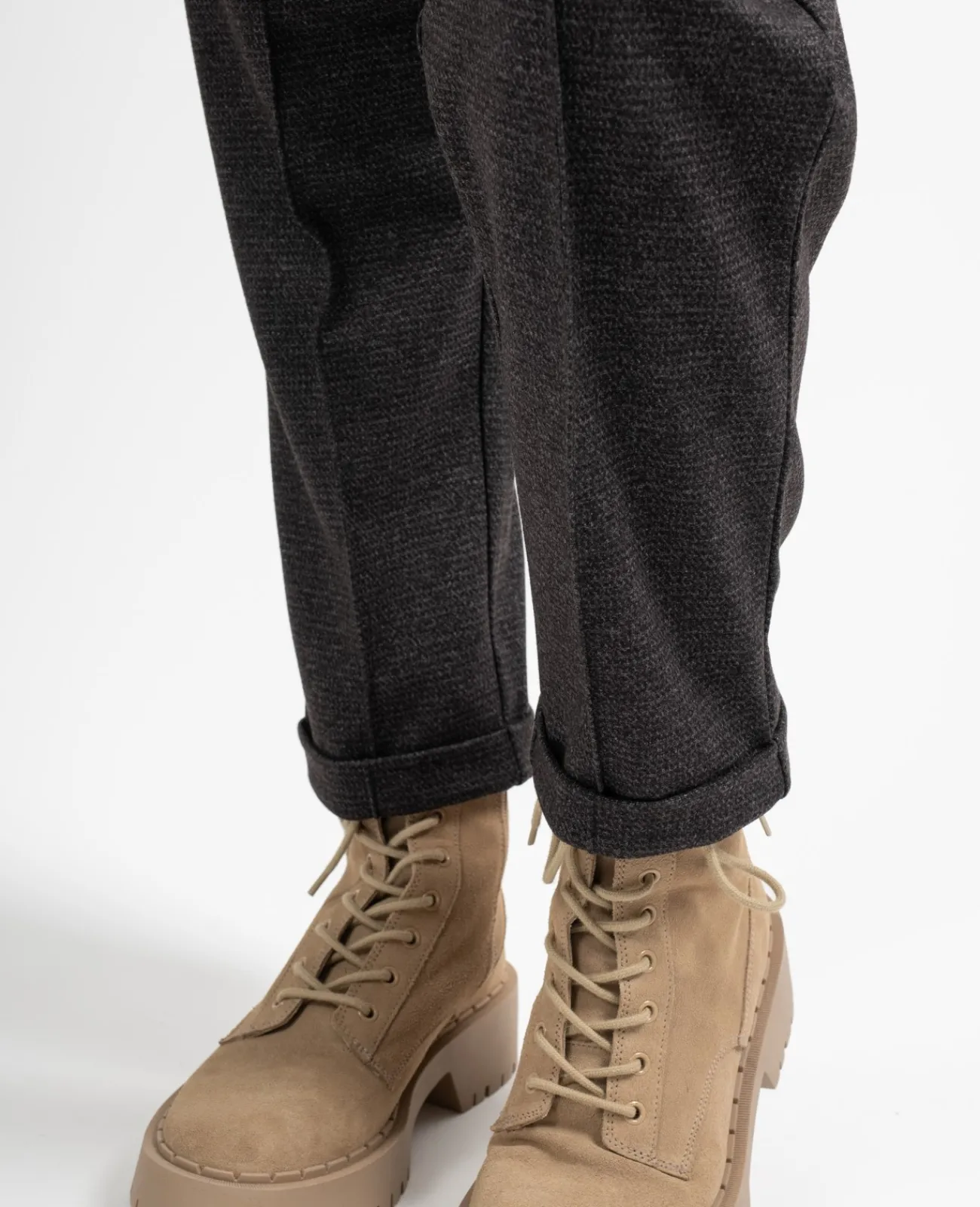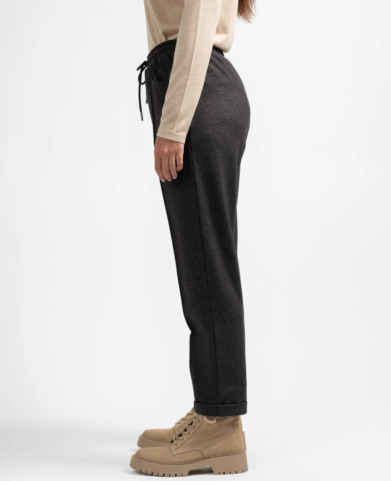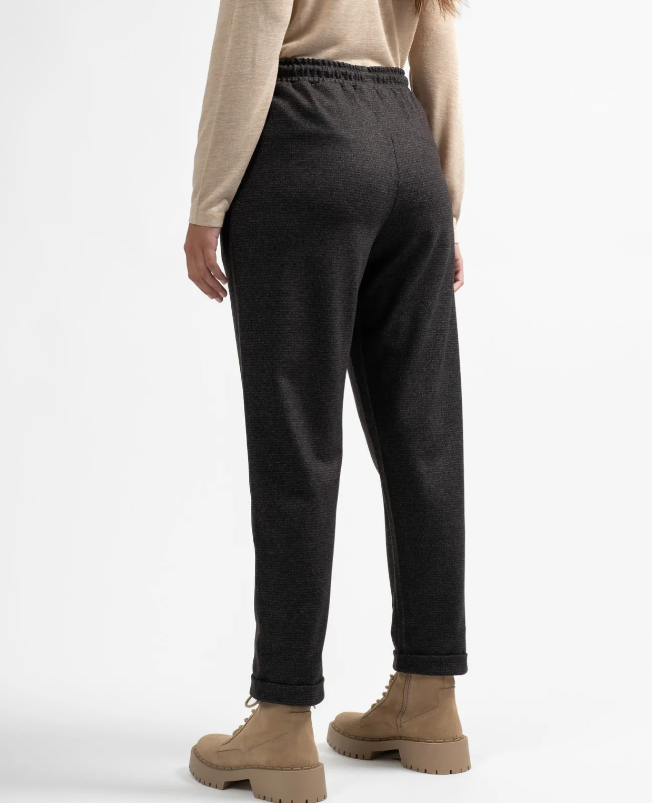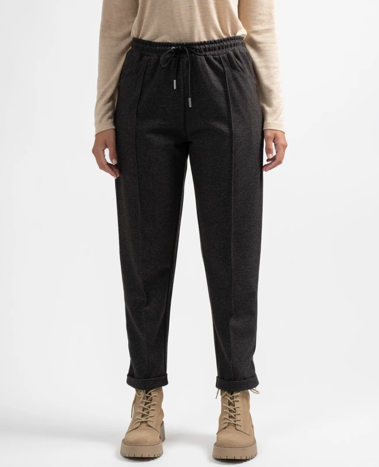 En jersey avec un aspect lainage, ce pantalon avec cordon de serrage à la taille, est aussi confortable qu’élégant. Avec un sweat ou un pull, c’est la tenue sportswear chic par excellence.