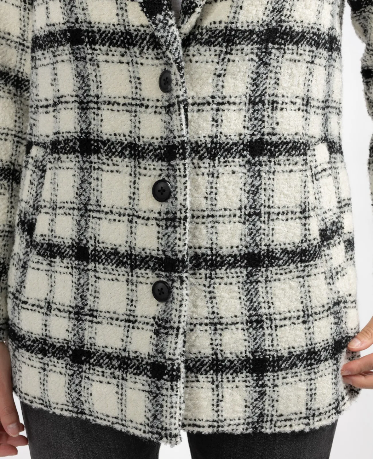 Chic avec son imprimé en tweed, Yvelin est un manteau esprit caban que l’on porte dès les premières journées d’automne. Col V et fermeture boutonnée, on le porte sur un pull pour allier chaleur et élégance.